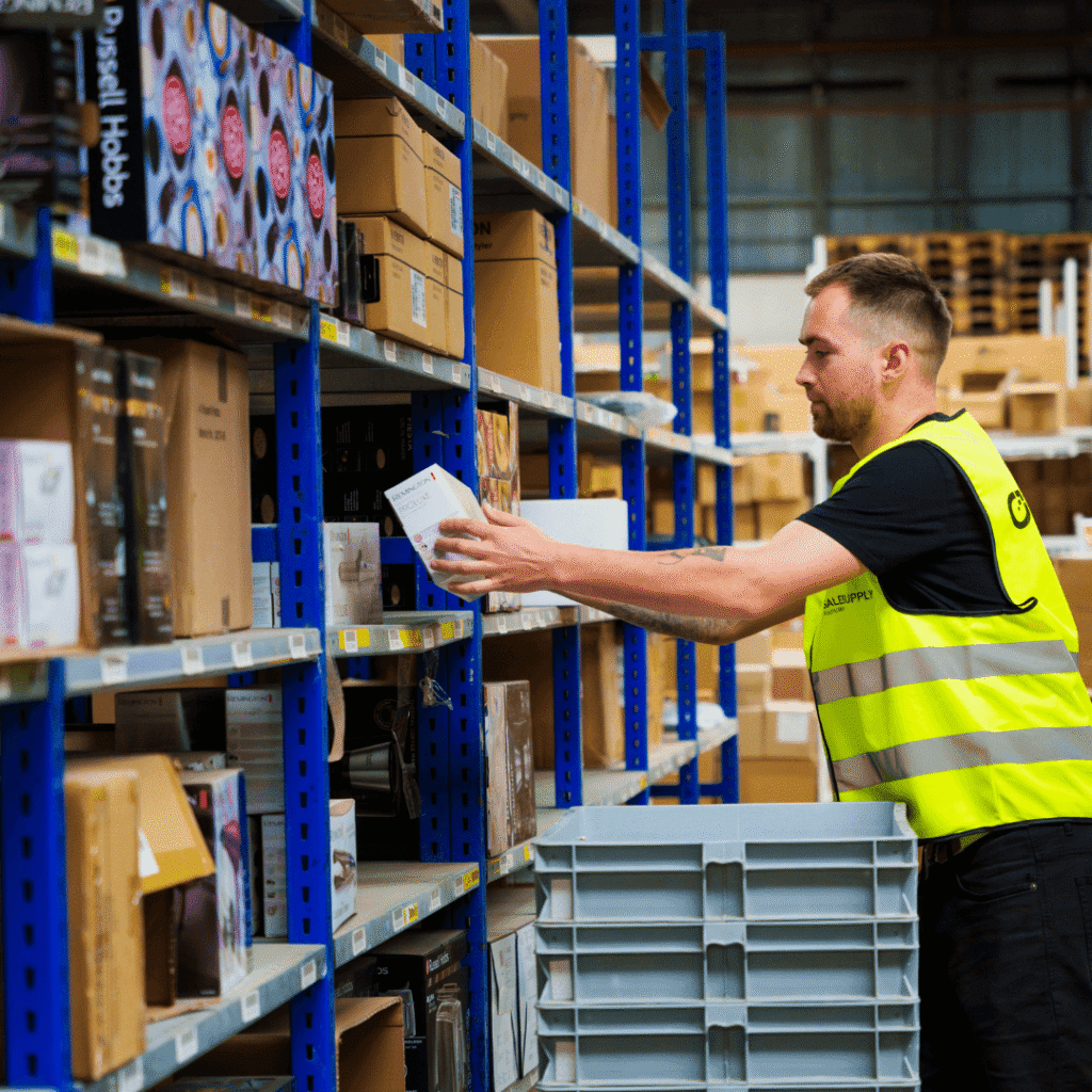 Der Aufbau und die Verwaltung eines eigenen Lagers ist teuer und zeitaufwändig. Das Outsourcing des Fulfillments im Ecommerce ermöglicht es dir, effizienter zu arbeiten, ohne auf Qualität oder Kontrolle zu verzichten. Salesupply verwaltet den gesamten Logistikprozess. Von der Lagerhaltung und Kommissionierung bis hin zur Etikettierung, Verpackung und dem Versand durch vertrauenswürdige Logistikpartner.